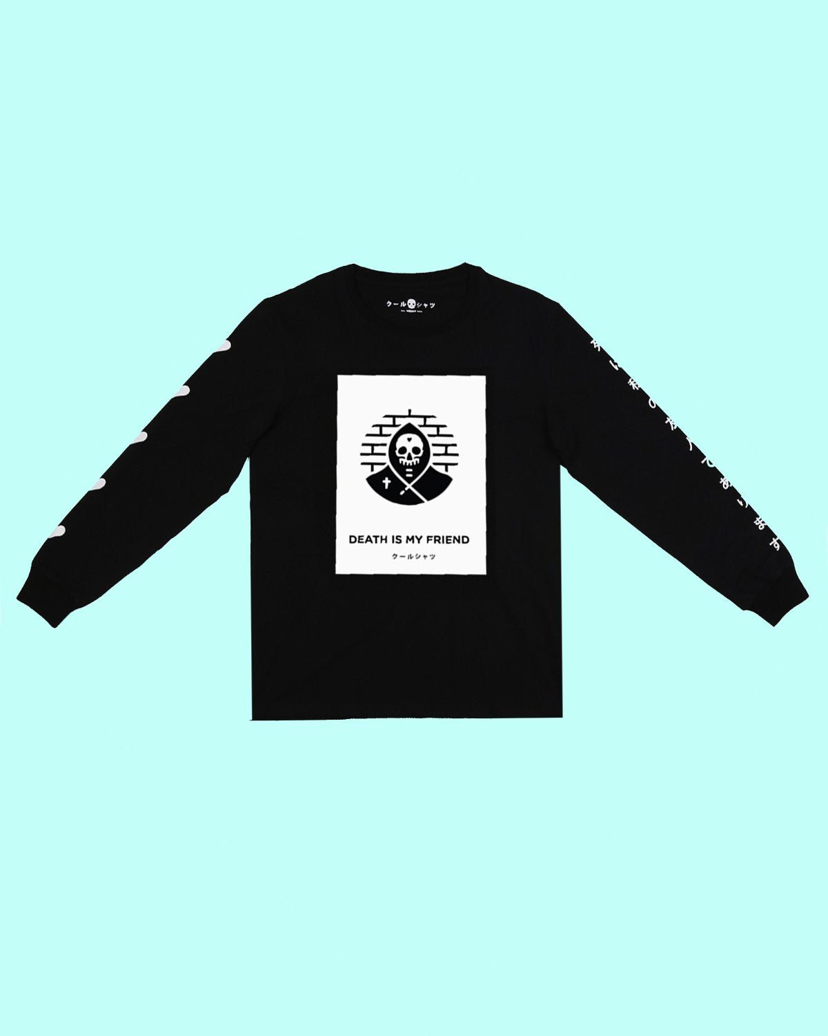 JAPANESE TEXT READS "COOL SHIRTS" AND "DEATH IS MY FRIEND"